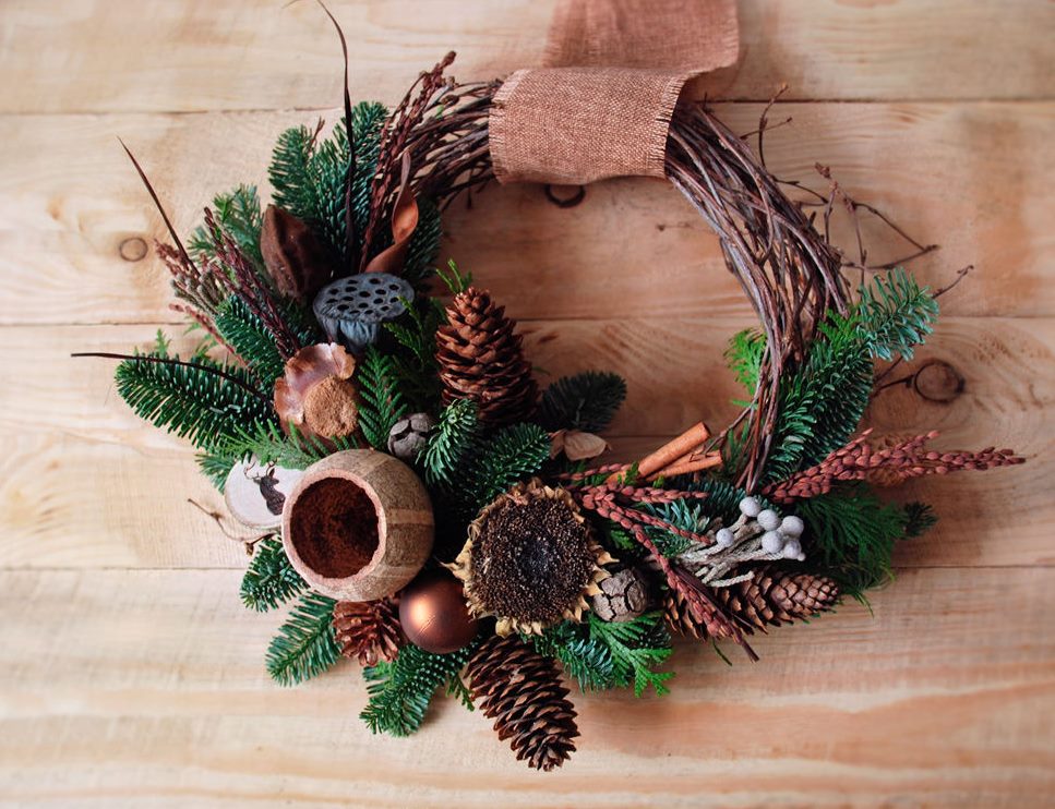 Edible products are also taken as decoration: nuts, berries, lollipops - the imagination is unlimited. Ready-made wreath can decorate the front door or gate, if we are talking about a private house.