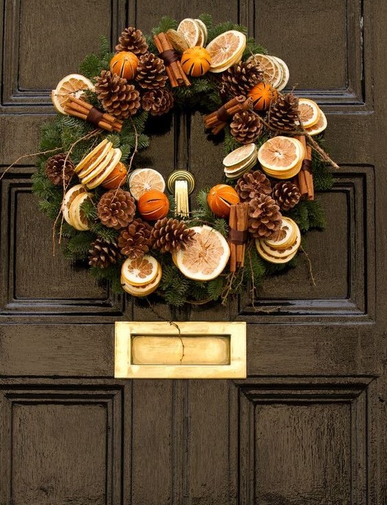 The door is the first thing a person sees when he arrives at the house and leaves it. Therefore, the decor of the entrance will be appreciated by the invitees. Following the European tradition, the front door is decorated with Christmas wreaths, which are diverse in appearance. A wreath can be purchased or made with your own hands.