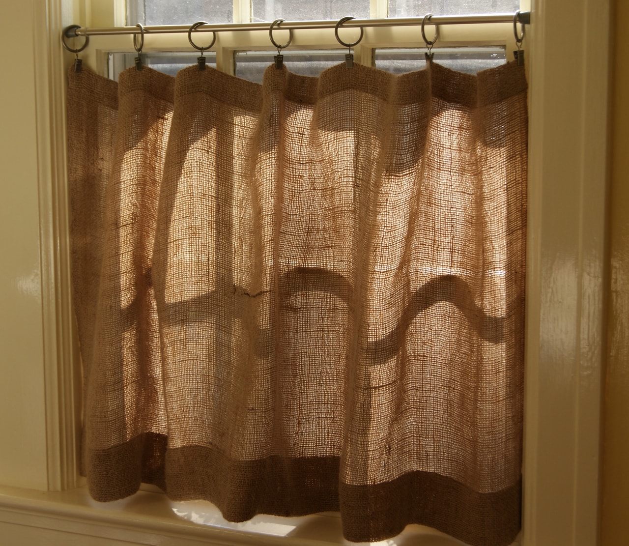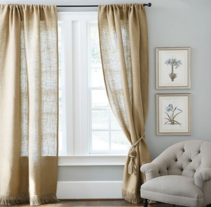 Burlap curtains fit perfectly into the Provence style interior