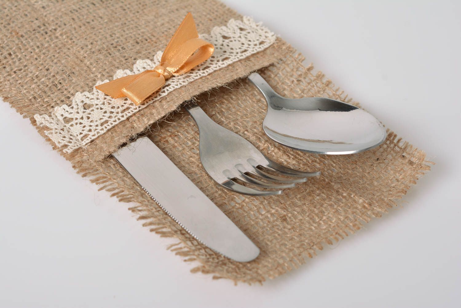 Lace braid, burlap and a little time - all that is needed to make stylish envelopes for cutlery