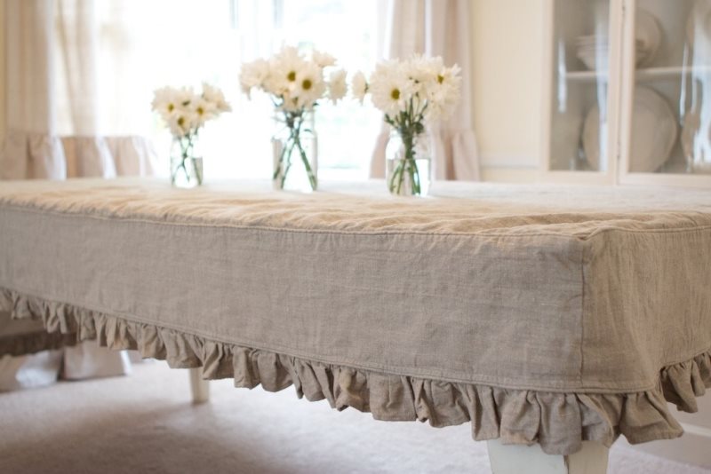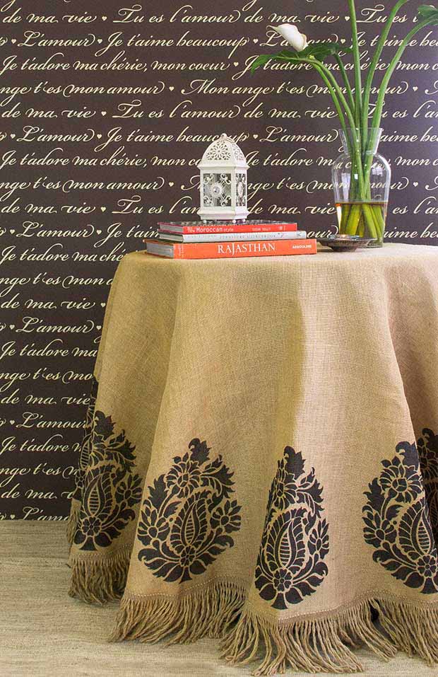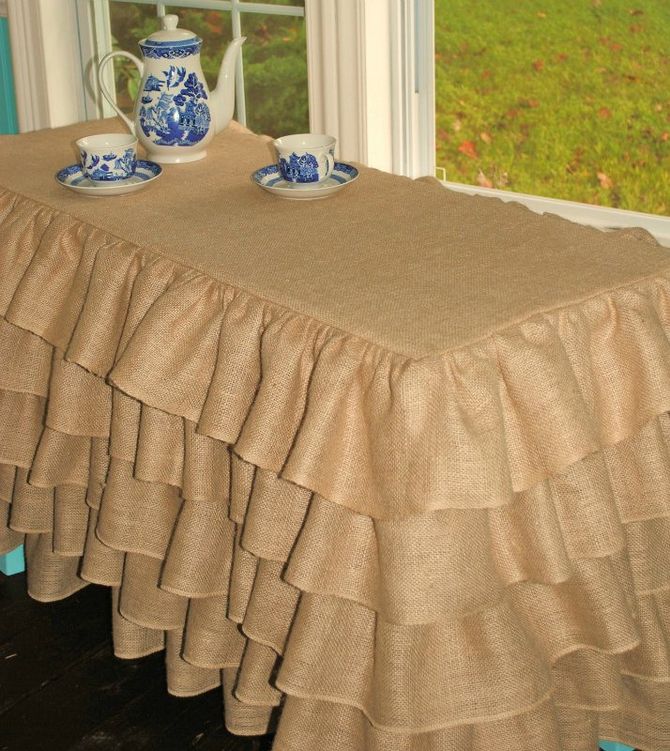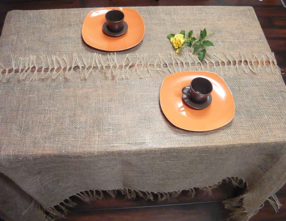 Burlap tablecloth for bedside table