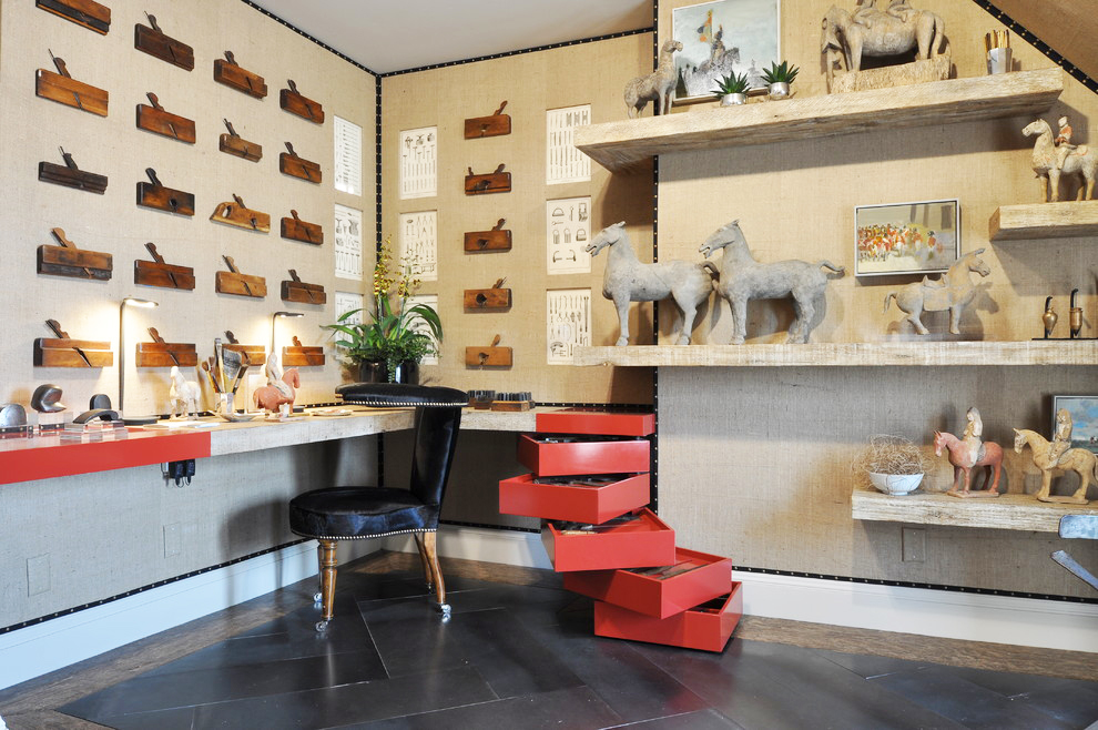 Burlap-finished wall looks beautiful and unusual