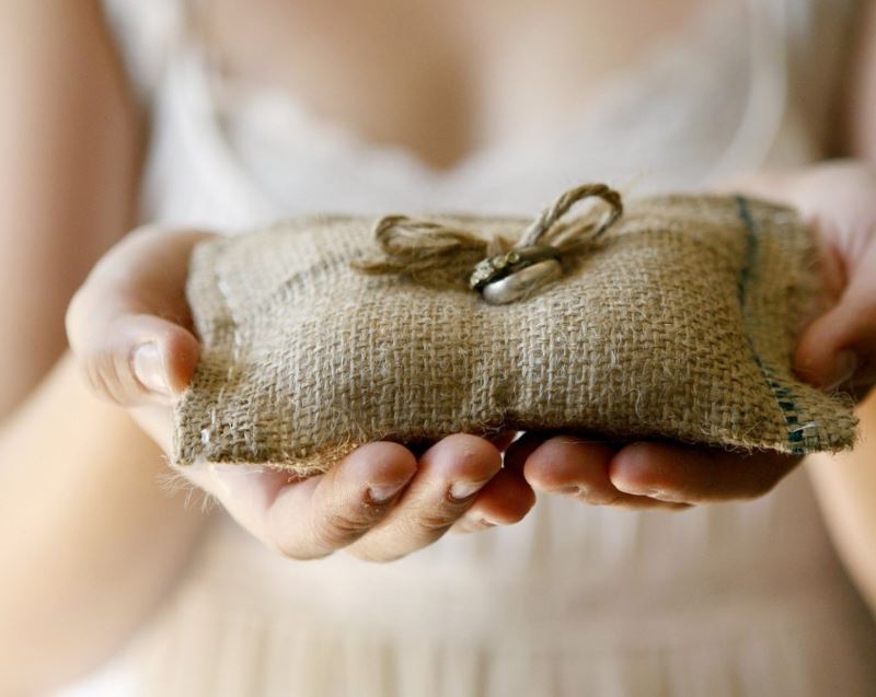 A pillowcase made from burlap is easy to sew, but looks stylish