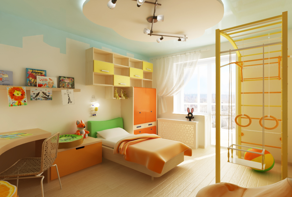 When all the pictures are ready, proceed to compile the big picture. It will be better and more visual if you do not just place objects on the background in a chaotic manner, but create a full-fledged layout of the room.