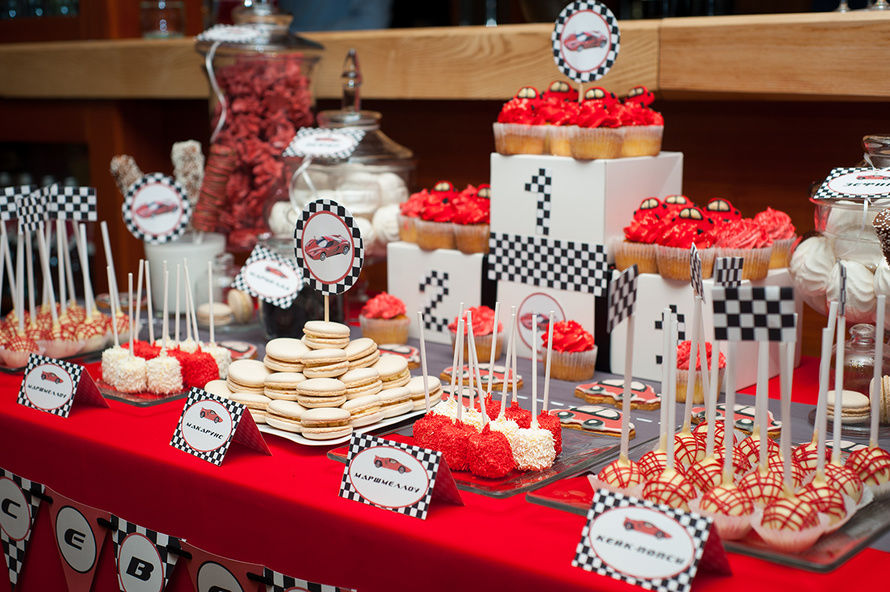 A great way to add variety to a children's table. You can use ready-made or make it yourself from paper. Find bright, colorful pictures of cartoon characters, cars, booties, soccer balls, etc. on the Internet. Toppers in the form of the number 1 are perfect for the first birthday of the child. Using any graphic editor, “cut out” the image in the form of a circle, oval, square or rectangle and print it on a color printer (choose thick paper). Glue the finished templates in pairs together by inserting a toothpick or a small skewer between the two images (depending on the desired height of the decor).