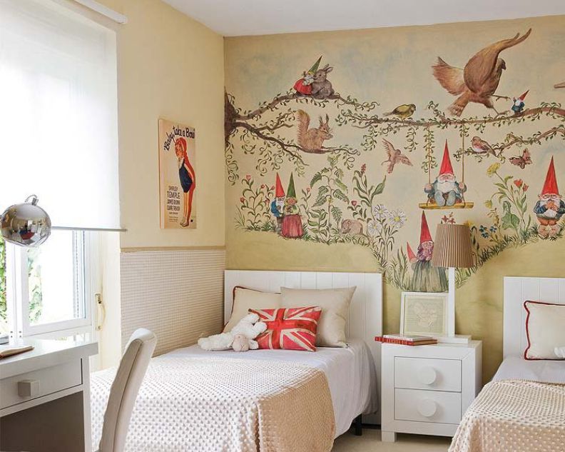 | 5. | Stencil paint | The easiest room decoration, the method of applying paint - spraying, painting, contouring, you can combine all together. |