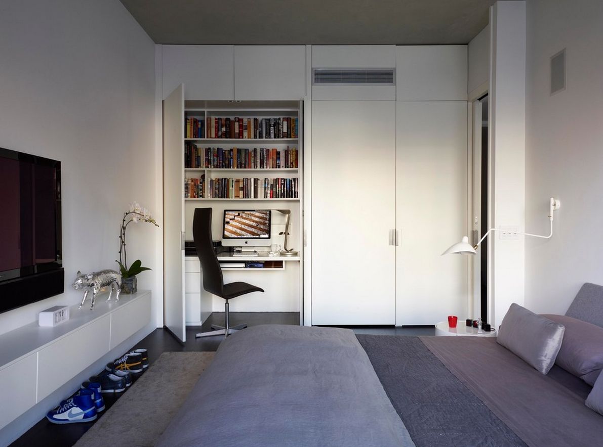 - Choose furniture according to the principle: “the more things you can store in it, the better”, this will help to avoid chaos on the desktop.