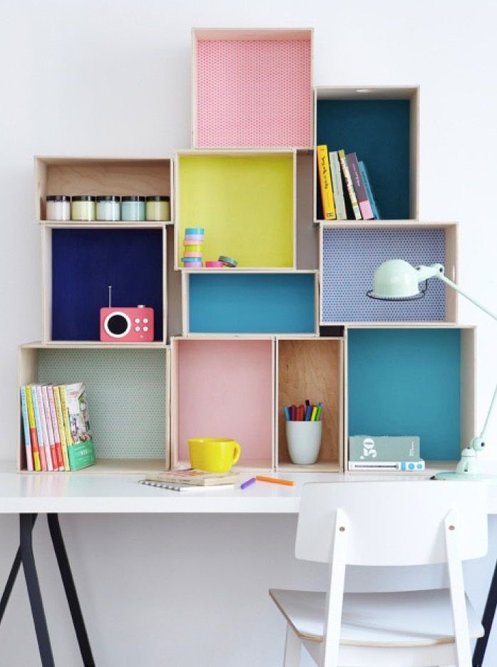 Vertical is used to the maximum. A great option is to put boxes with important little things on the shelves, which are often already in the niche, hang several small but roomy shelves on the wall. They are suitable for storing folders, books, and more.