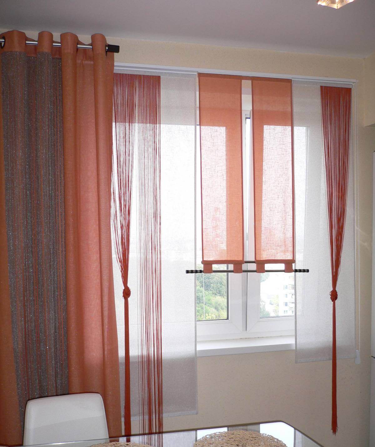 Assembling the curtains at any point (bottom, top or in the middle) and fixing them with a decoration (ribbon, belt, organza) will give a completely different look.