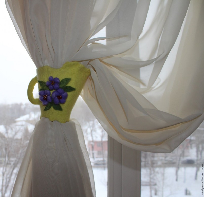 Feel free to translate all your ideas into reality, remake, change, come up with new and interesting things. Creating decorations for curtains with your own hands, you can give a unique inimitable look and elegance to the space.