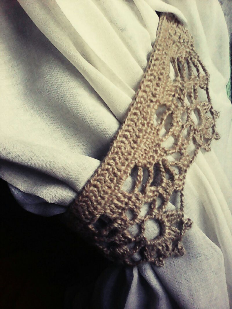 As traditional pickups, small brooches, ribbons with a dull decor and beads, cords with tassels will serve.