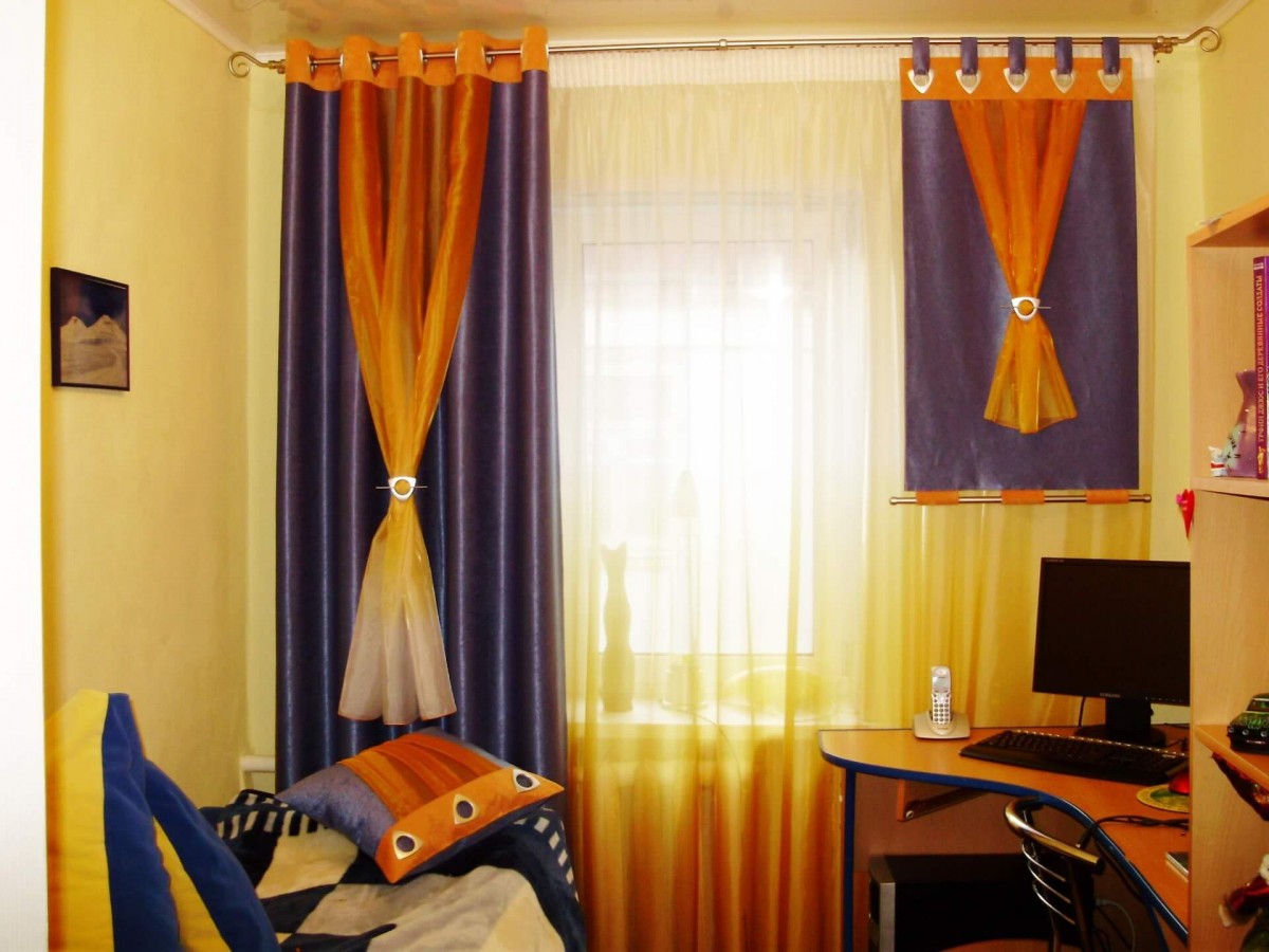 For window decoration in a children's room, it is better to use multi-colored curtains.