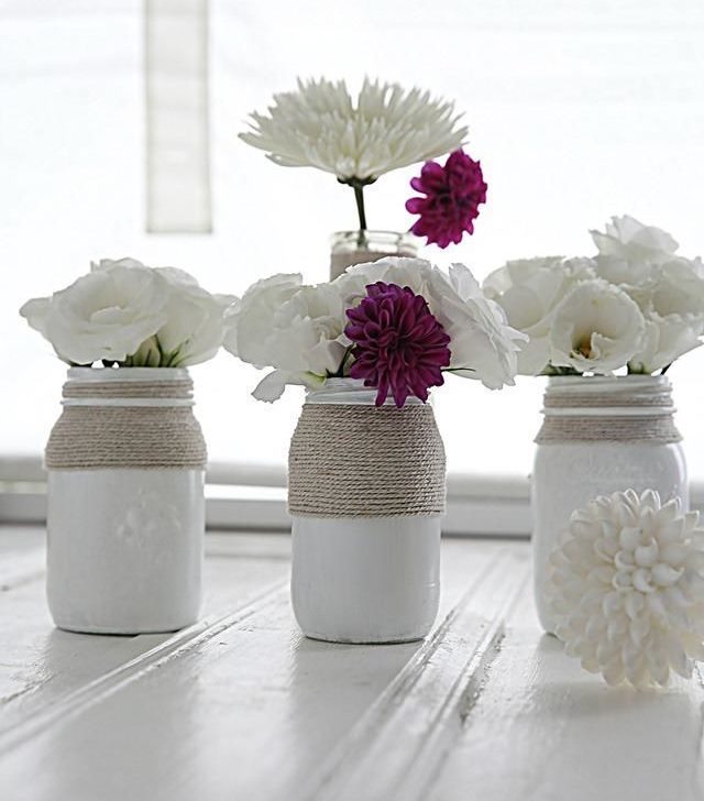Great design will come out of the vine. Suitable green or brown, depending on the chosen style. With a vine, you can simply wrap the jar, creating a kind of cover. It is possible to combine this method with others and create interesting designs.