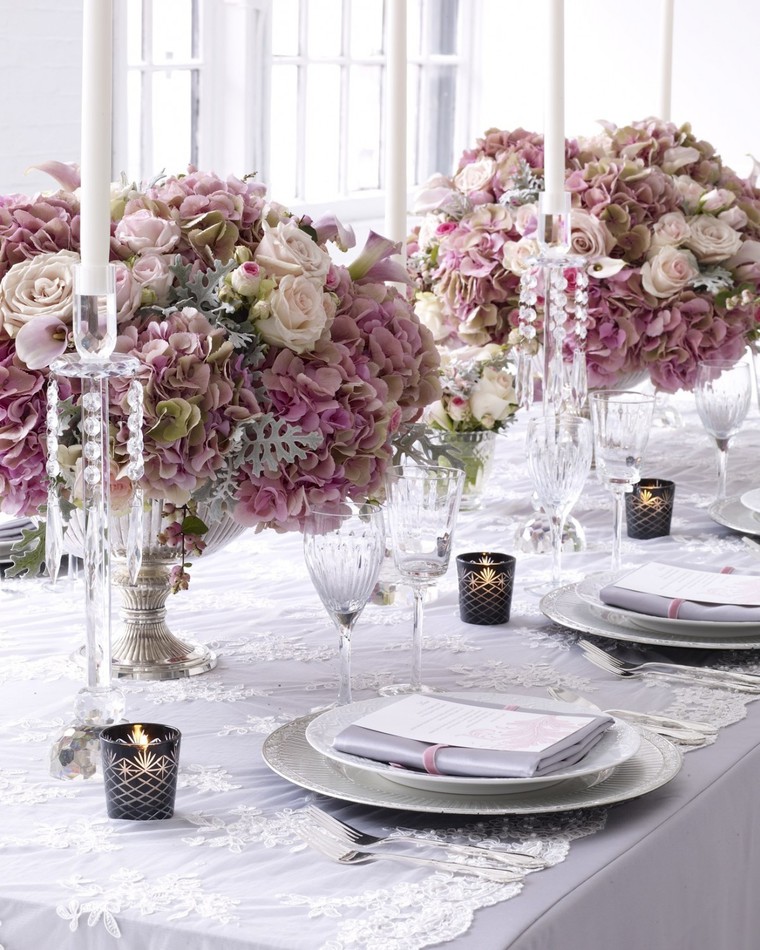 To design a table in the style of shabby chic, white and pink colors are used, as well as their various shades and combinations