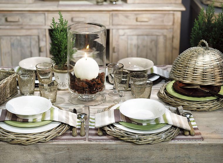 Restraint in color and the presence of natural materials in dishes, plates are characteristic of the Scandinavian style. Tablecloths may be completely absent. Instead, wooden trays or bamboo dining mats are used.