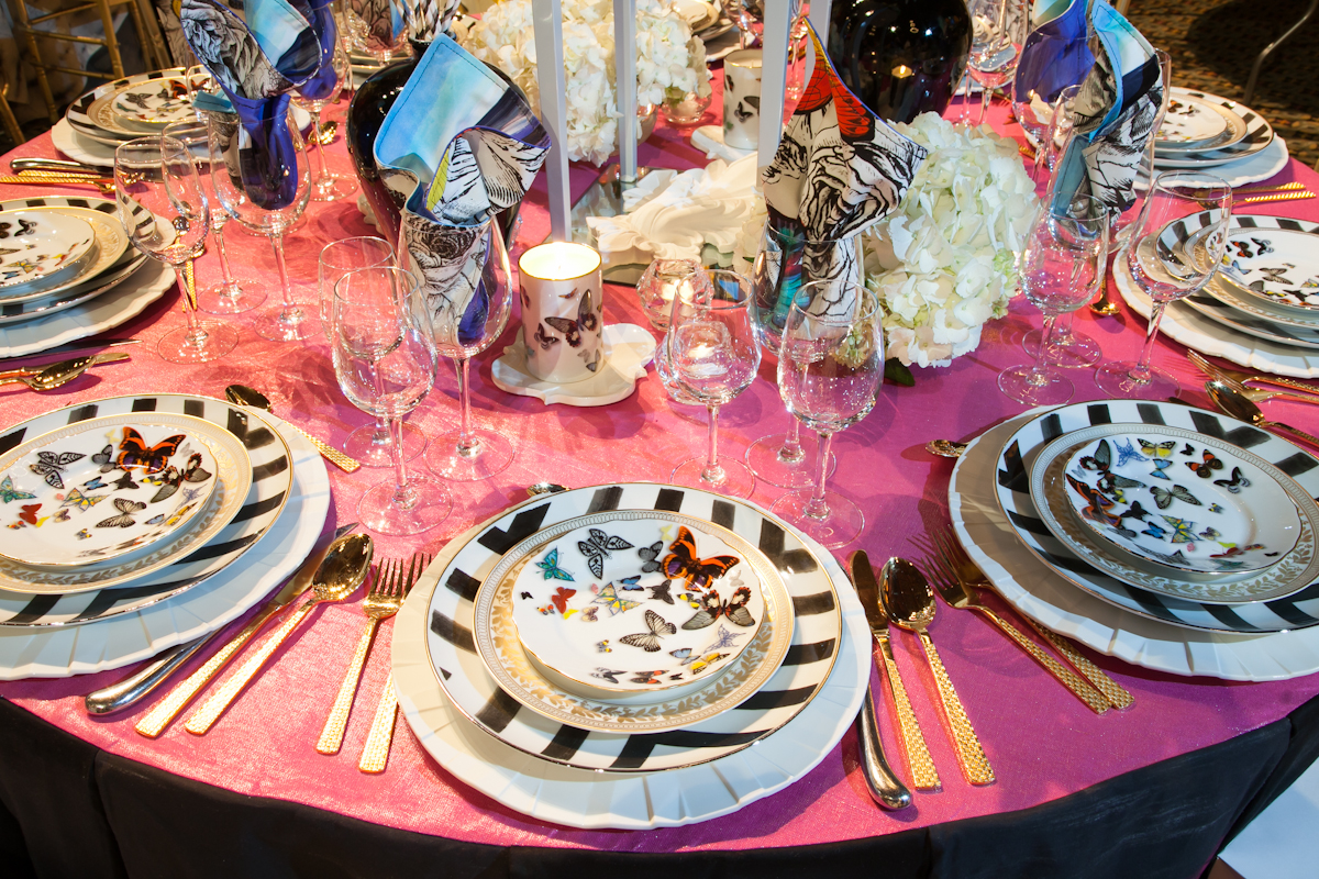 Gold embossed dishes and velvet tablecloths are suitable for serving