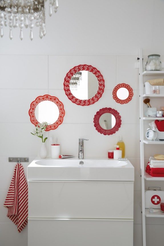 - Do not clutter up the space - just use a composition of 4-5 mirrors of medium shape.