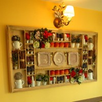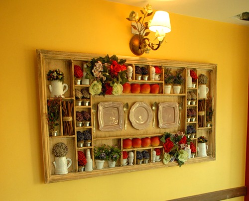 Original small shelves for plates or photos are made from pallets. They successfully fit into the Provence interior; they are suitable for apartments and summer summer kitchens.