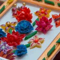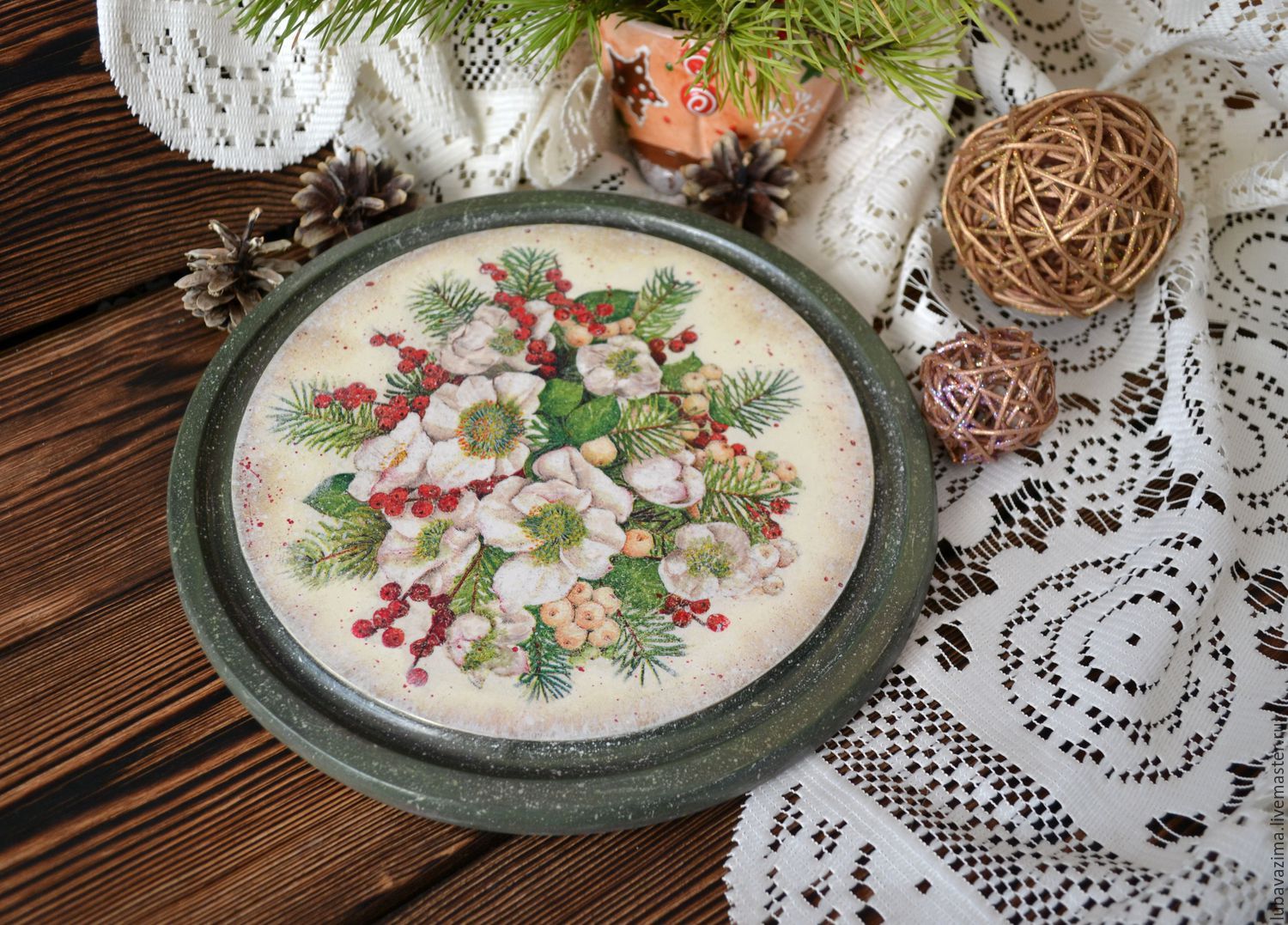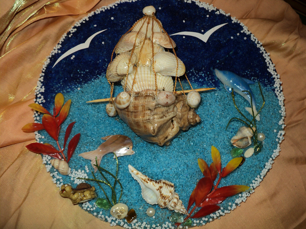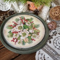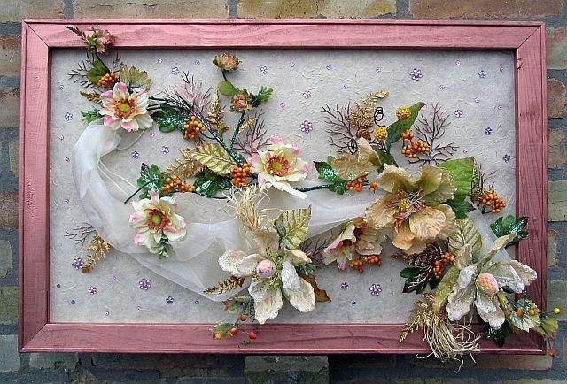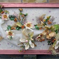 Volumetric still lifes, different flowers, fruits are suitable for the kitchen. They are glued to the base or made of them ready-made plates as in the photo.