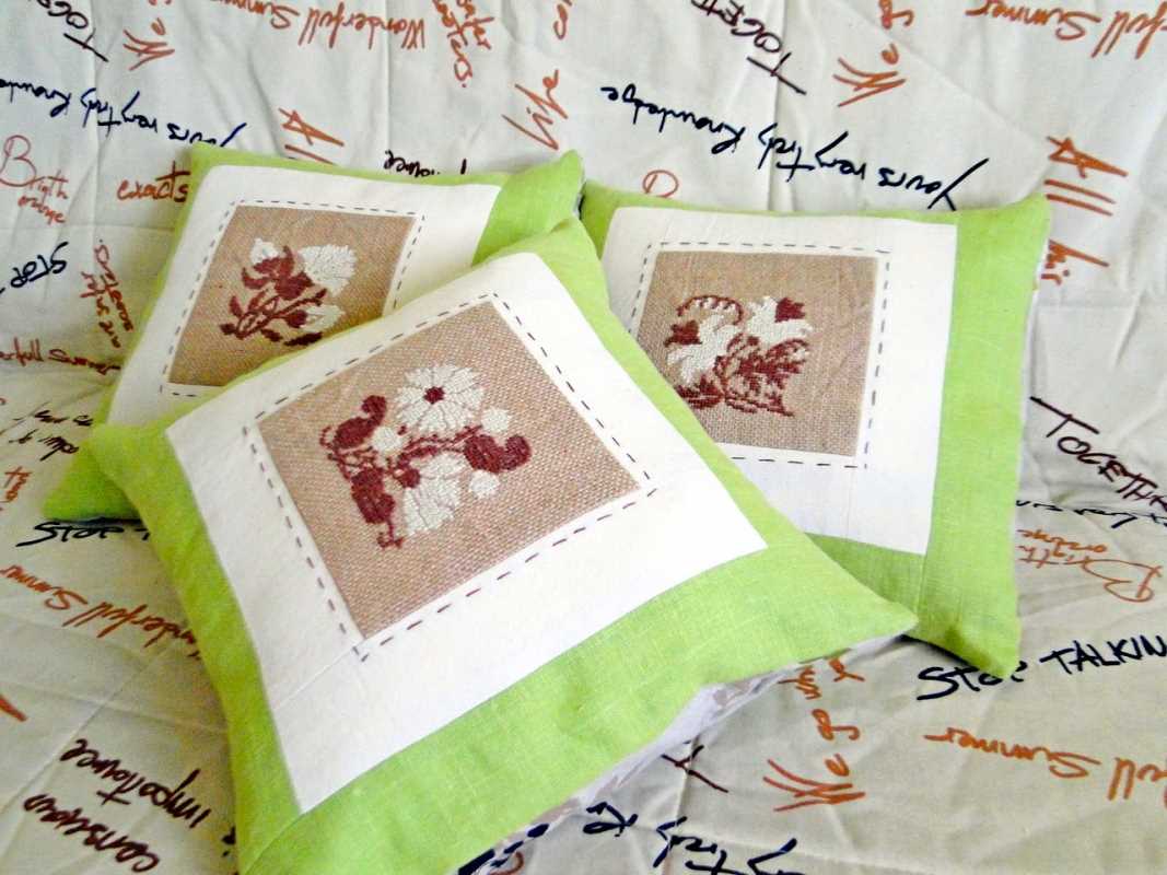 - Decor pillows with embroidery, buttons, fabric and more.