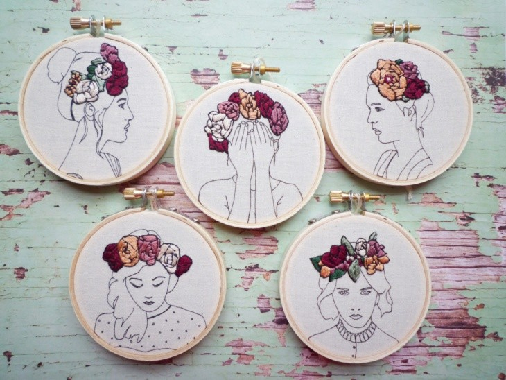 Embroidery is done with simple stitches according to a pre-designed pattern