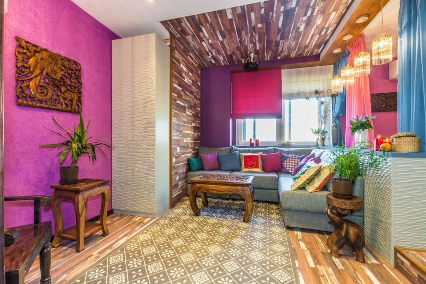 Another useful feature of liquid wallpaper is the possibility of zoning the room. Playing with color and texture, you can visually expand the room and add light to it.Individual design can be developed for each room. For example, children's space can be stylized with boats, clouds, flowers and cute animals. And for the living room, a monotonous coating with the addition of a small amount of small sparkles or nacre will be appropriate. The so-called melange effect and a rather large coating texture will also look interesting and advantageous. If you want to depict various landscapes, contrasting transitions or bright color splashes - any design with liquid wallpaper is possible. But it should be remembered that this type of wallpaper is deformed in contact with water. Therefore, it is highly discouraged to use them in bathrooms and kitchens.