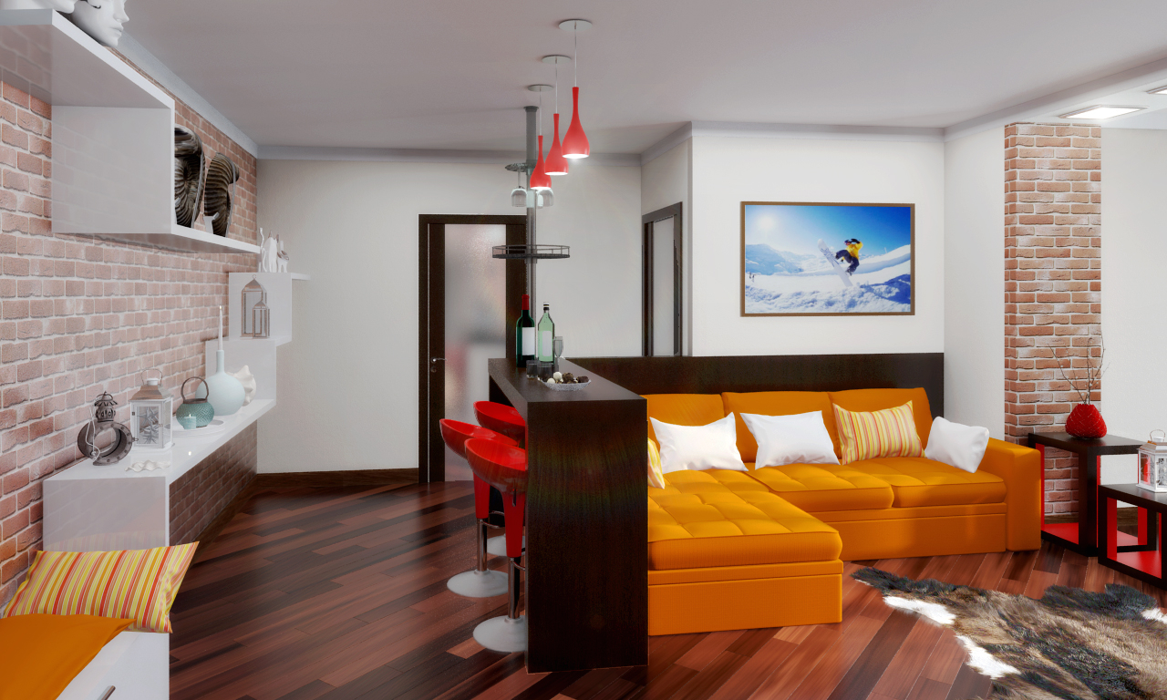 Design appartement d'une chambre de 60 mètres carrés. m: réaménagement, réorganisation ou réparations mineures?