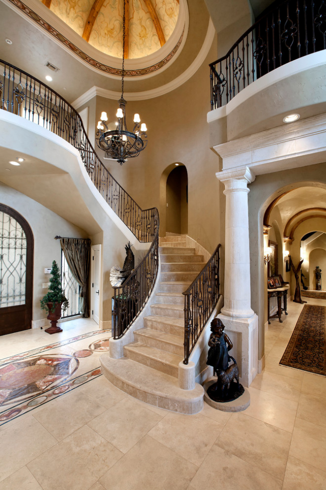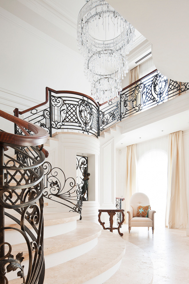Escalier - Un élément important dans un bâtiment à plusieurs étages. Cela aide non seulement de passer d’un étage à l’autre, mais devient également l’objectif principal conception. Construction attache les locaux regard royal, le remplit de luxe.