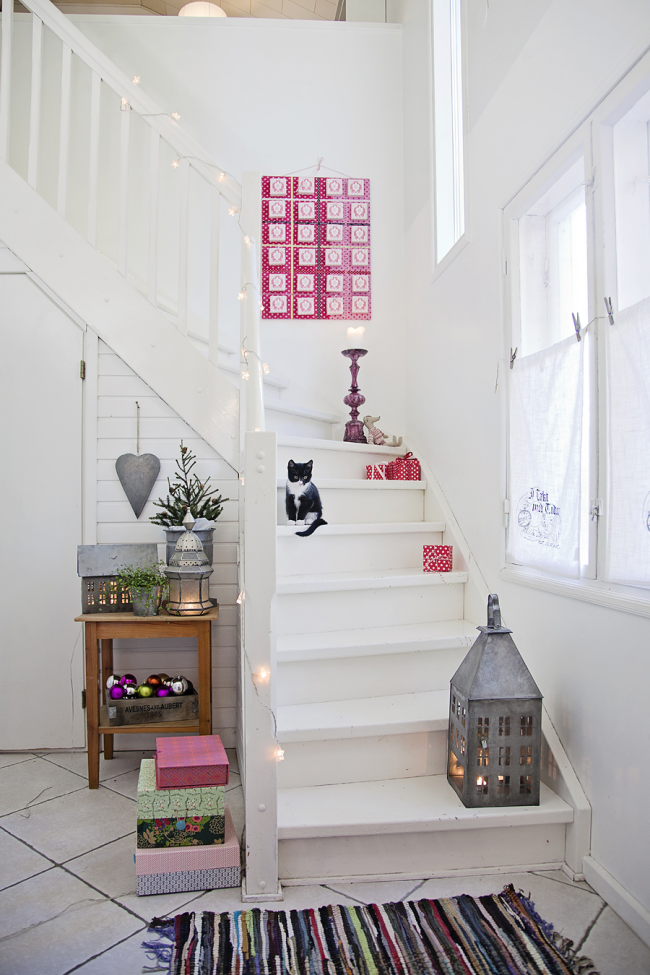Faire un standard une échelle assez intéressant délivrer sa balustrade n'est pas à la manière traditionnelle. Il convient également de prêter attention à la place sous étapes. Si vous le posez avec des carreaux avec des ornements lumineux, alors l’image globale de l'intérieur rempli de positif, aura un look de fête.