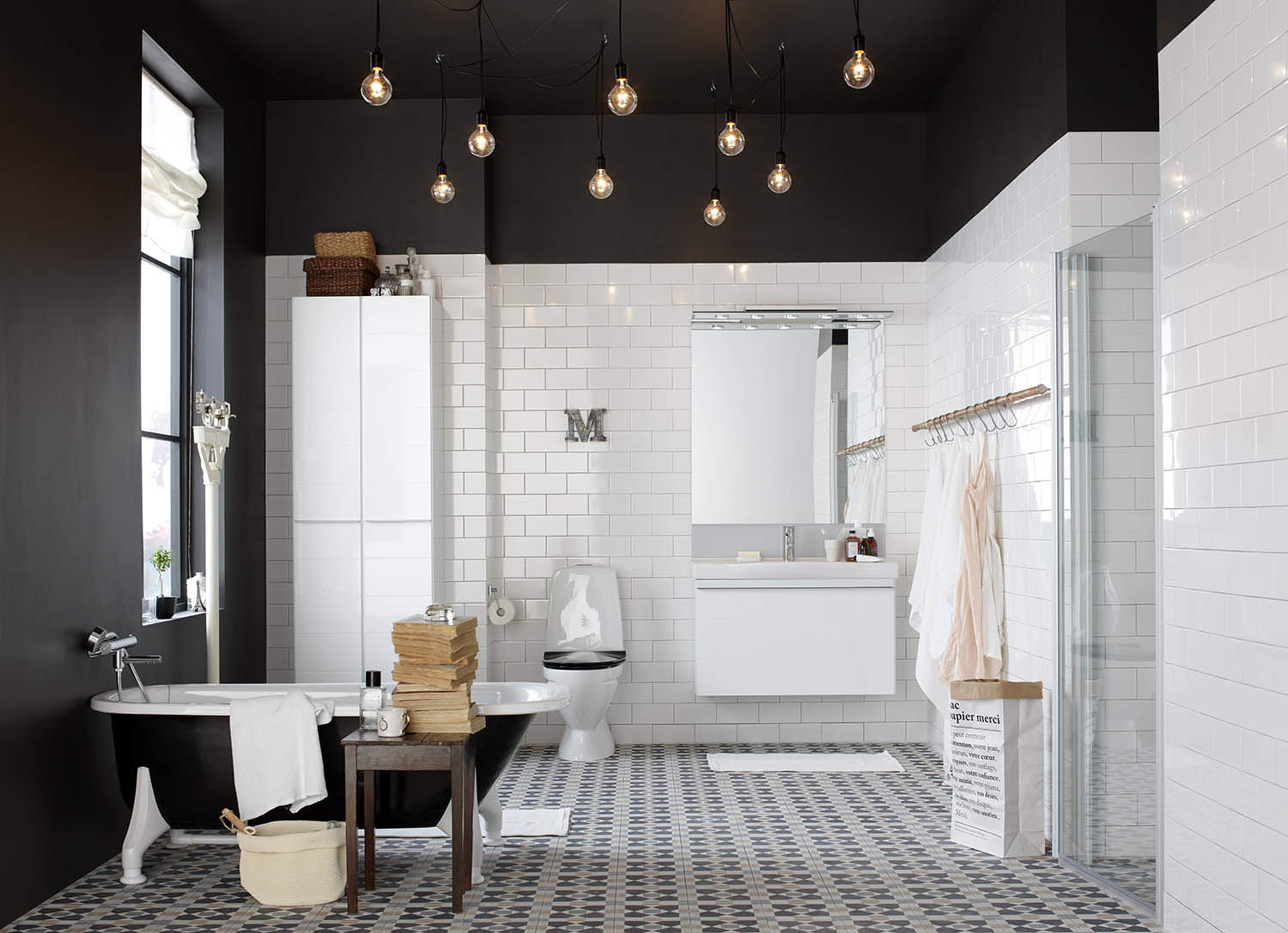 - Salle de bain et plafond noir.
