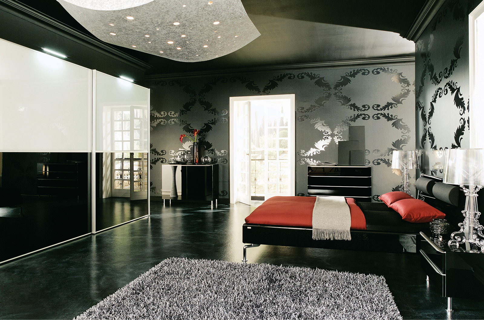 Chambre lumineuse avec plafond noir