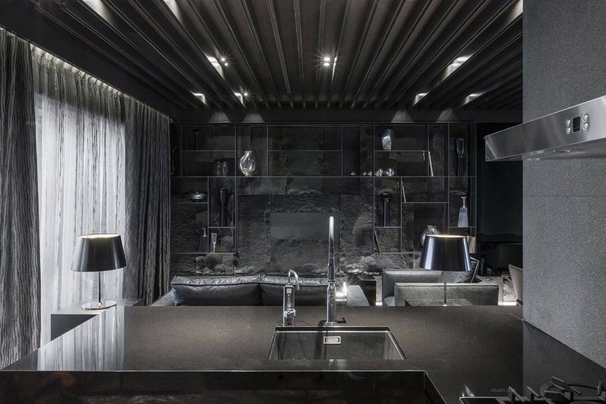 Intérieur de cuisine avec plafond noir
