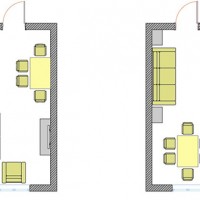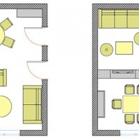 La plupart des gens relient le salon à la salle à manger, en plaçant une table à manger en face du canapé et le set de cuisine dans le coin libre, ceci achève la rénovation.