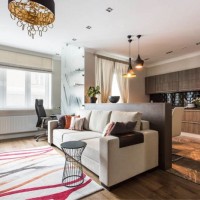La chambre trois en un sert de lieu de repos. Ici, ils mangent et cuisinent des aliments, communiquent et, dans certains cas, travaillent même. Combiner ces trois pièces n'est pas facile. En même temps, un salon spacieux, remplissant plusieurs fonctions, peut sembler plus confortable que deux ou trois petites pièces.