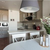 Des conseils pratiques de décorateur vous aideront. Rappelez-vous que la cuisine de la salle à manger du salon doit être faite dans un style simple. Si vous aimez les antiquités en tant qu'objet de luxe, cela ne devrait pas être trop. Laissez de l'espace libre afin que la pièce ne soit pas encombrée et bien éclairée.