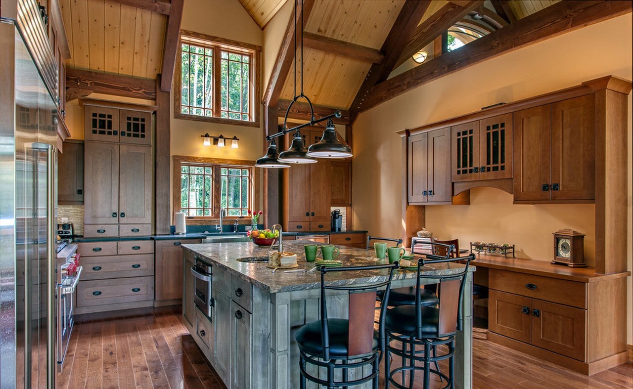 Bien pensé conception de cuisine de style campagnard vous aidera à abandonner l’agitation de la ville et à profiter tranquillement du temps passé avec votre famille et vos animaux domestiques.