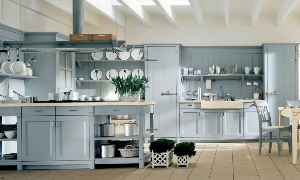 Le choix des teintes de base pour créer un intérieur cuisines de style campagnard Dépend de la direction stylistique principale. Les champs ouverts de la Provence se caractérisent par des champs de lavande, des oliveraies et des rivages de la Méditerranée.