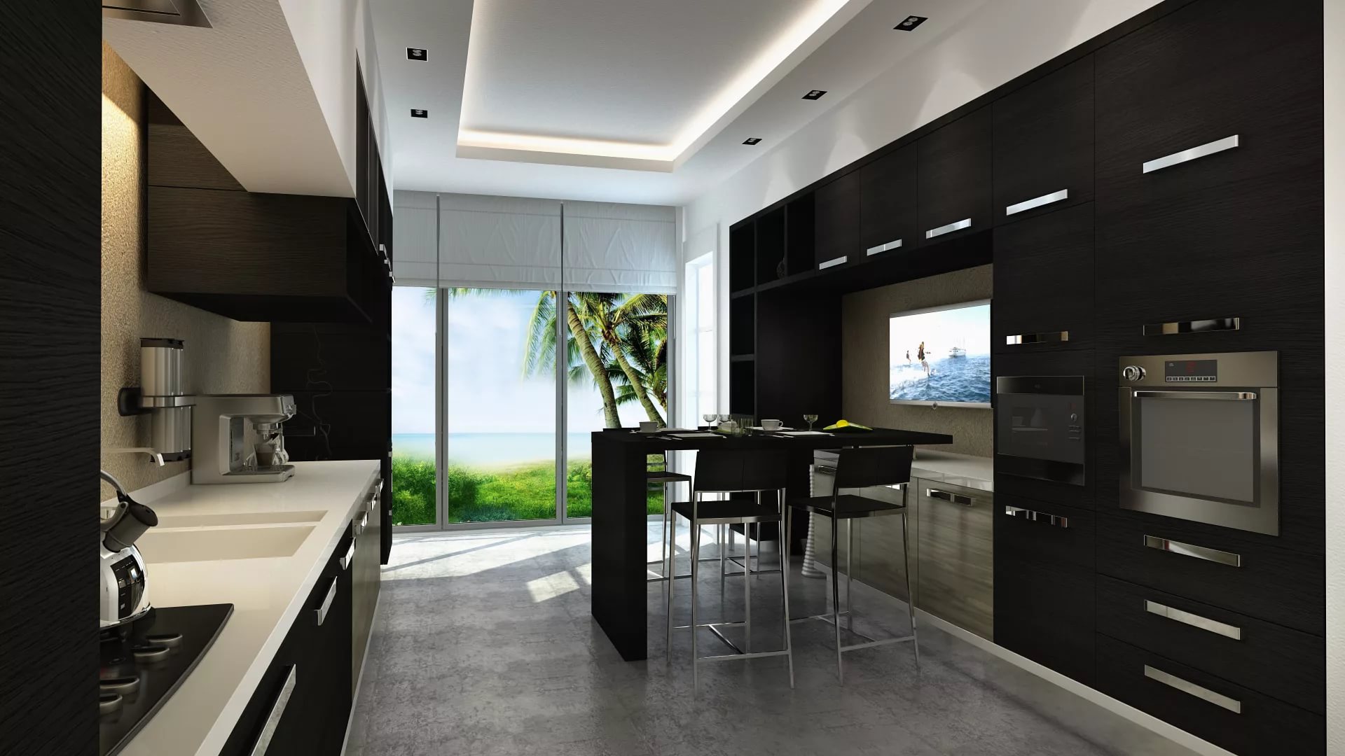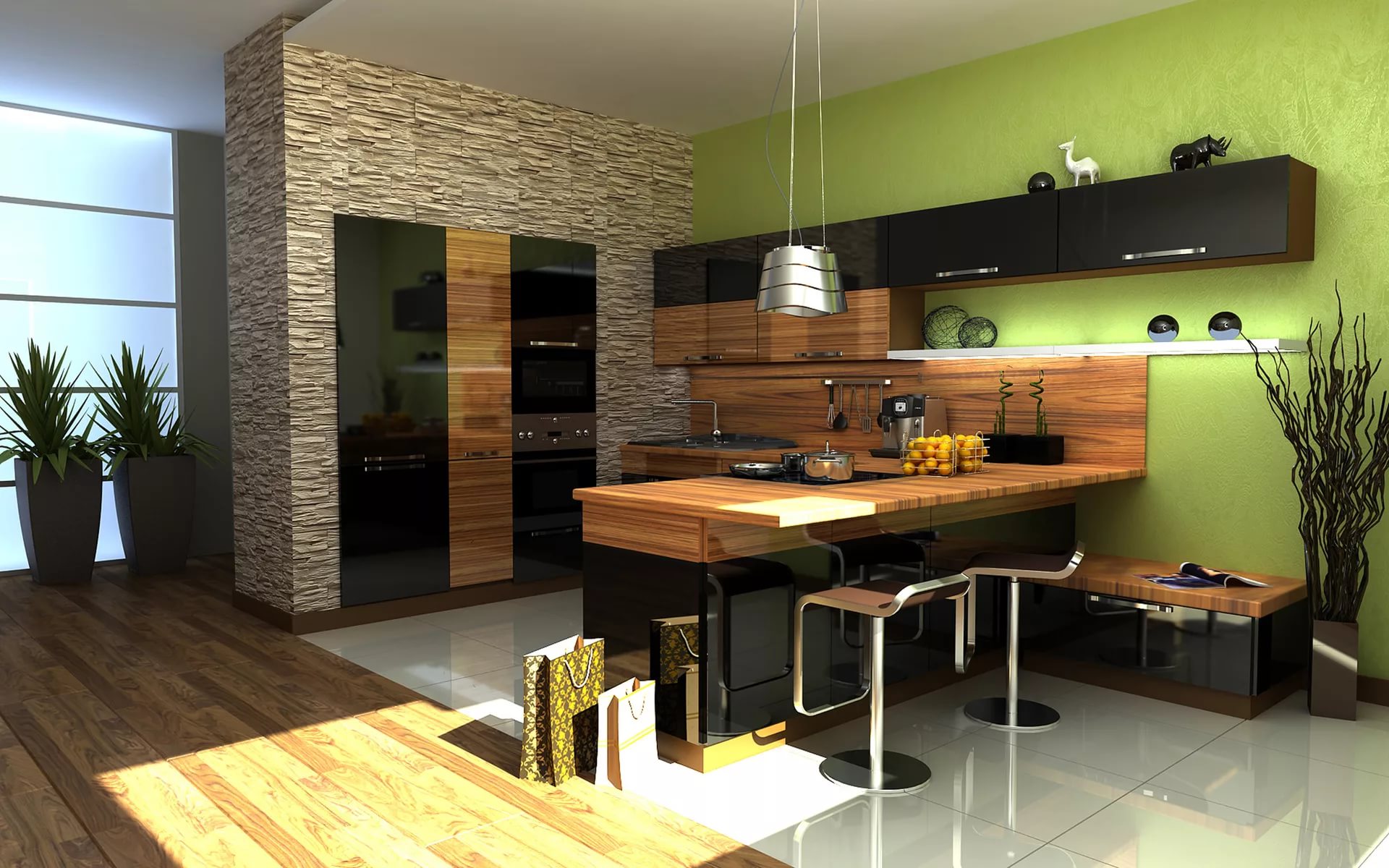 Le comptoir de bar aura également l’air approprié près de la fenêtre. Cette option séduira particulièrement les enfants qui peuvent faire un travail créatif pendant que leurs parents sont en train de cuisiner. Au fait, chaque adulte rêve de prendre une tasse de café tout en regardant un magnifique paysage.