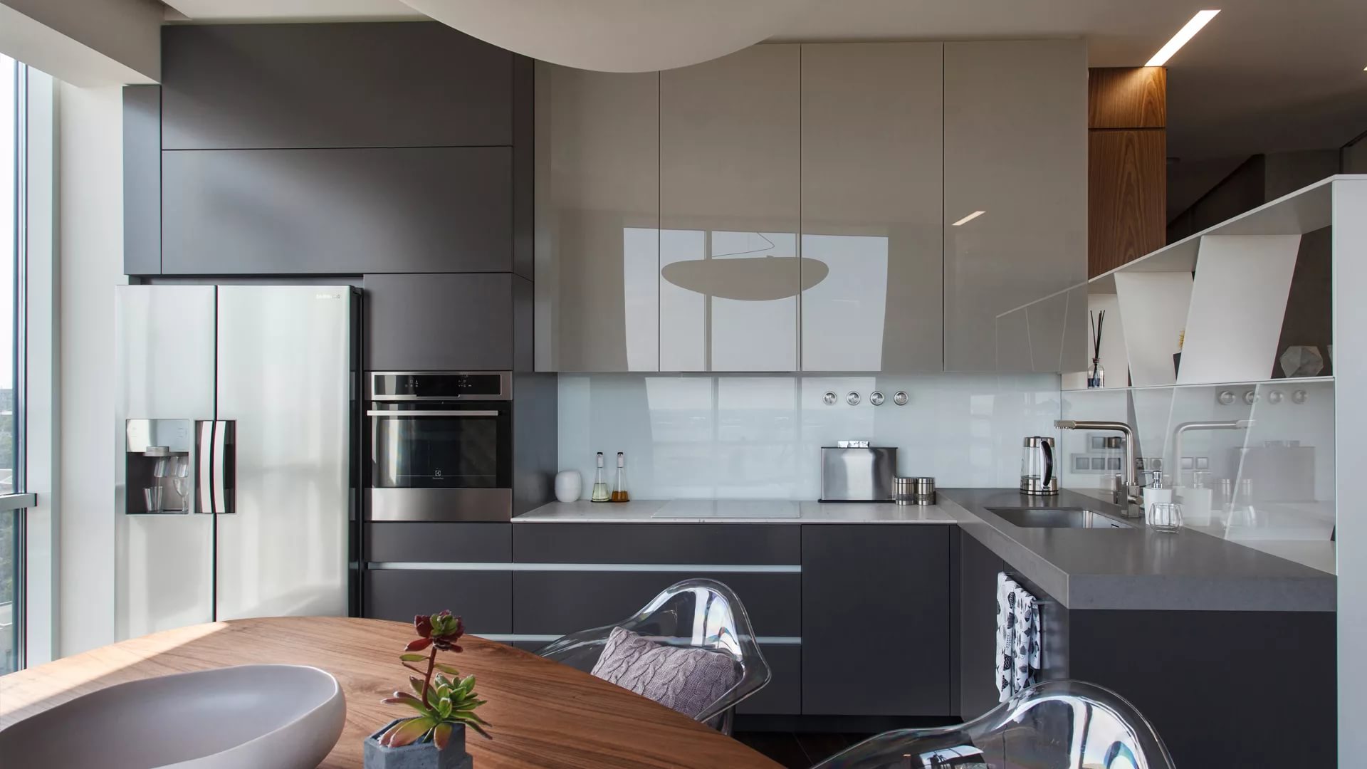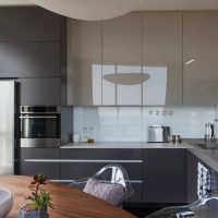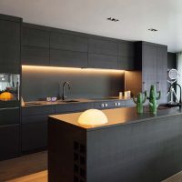 En parlant de design de meubles, le charbon est au sommet de sa popularité.Une telle cuisine sera considérée comme pertinente pendant au moins cinq ans. Vous pourrez ainsi effectuer les réparations en toute sécurité sans vous soucier des tendances futures. De plus, une telle solution conviendra idéalement à tout changement.
