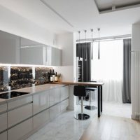 S'il est possible de combiner un balcon et une cuisine, le comptoir de bar sera une bonne solution pour zoner l'espace. De plus, les modules modernes vous permettent de masquer le rack pour libérer de l'espace pour des meubles plus volumineux.