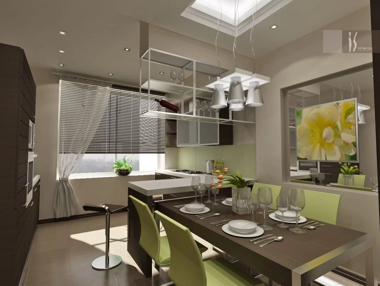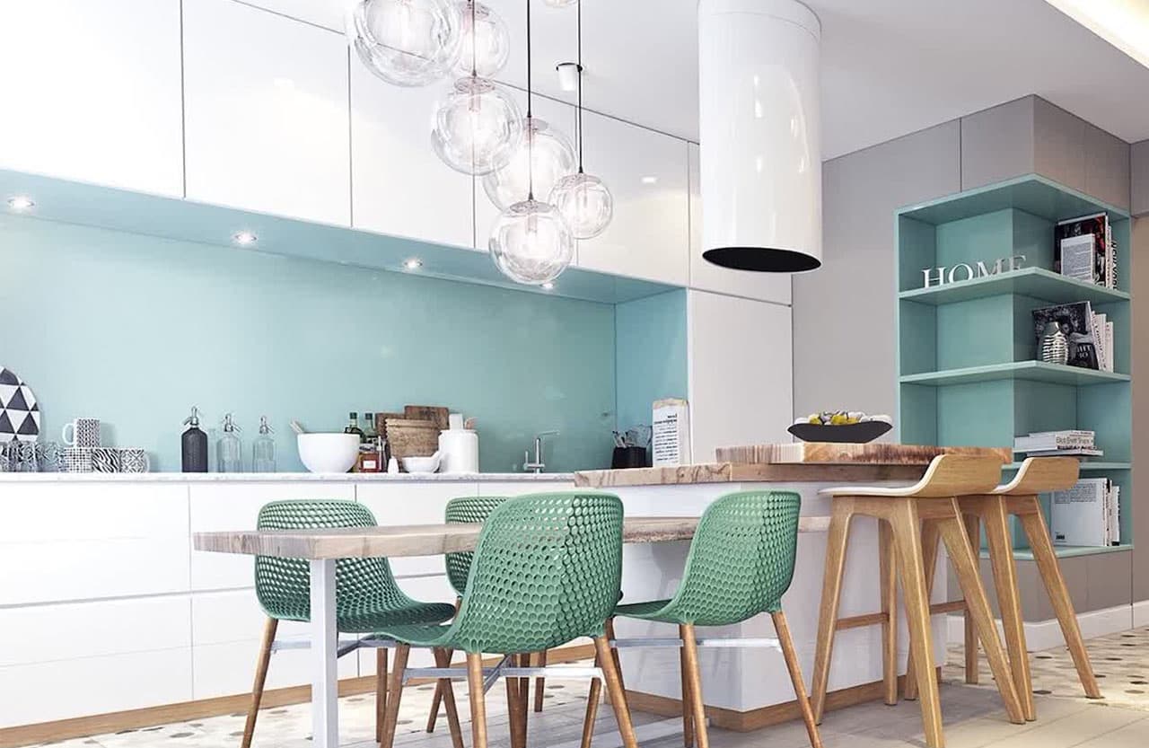 C'est bien quand la couleur verte est en contraste. Il est conseillé de l'utiliser dans des motifs, dans des plats, etc. Si vous souhaitez peindre les murs, il est conseillé de choisir des teintes plus chaudes et peu profondes.