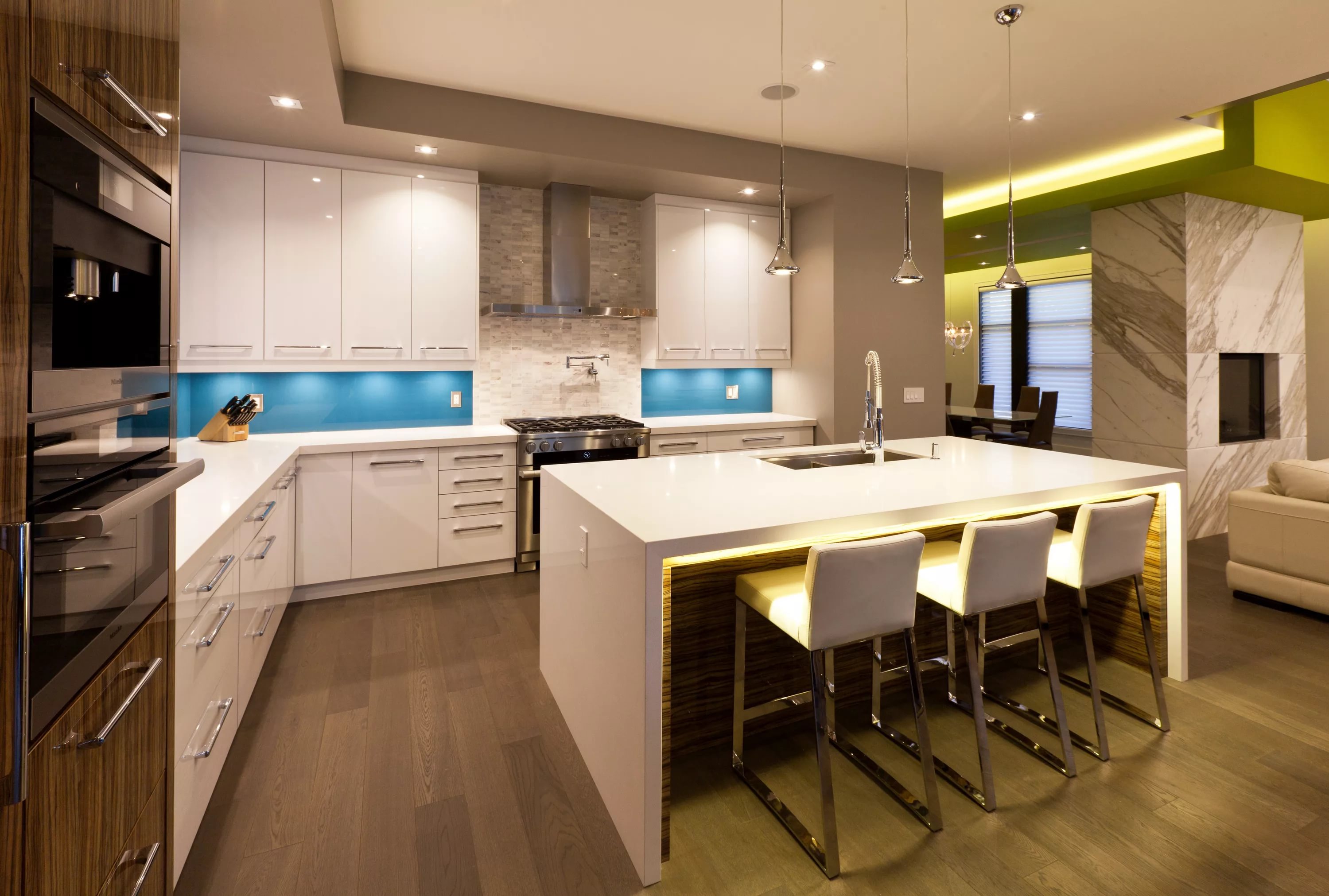Le design moderne de la cuisine combiné au salon 2019 implique l’utilisation obligatoire de meubles supplémentaires pour plus de confort.