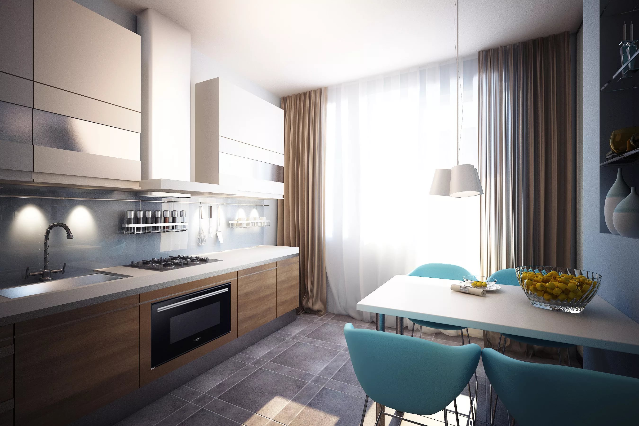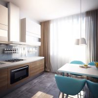 Même une couleur bien choisie des murs peut agrandir une petite partie de la cuisine et la rendre moderne.