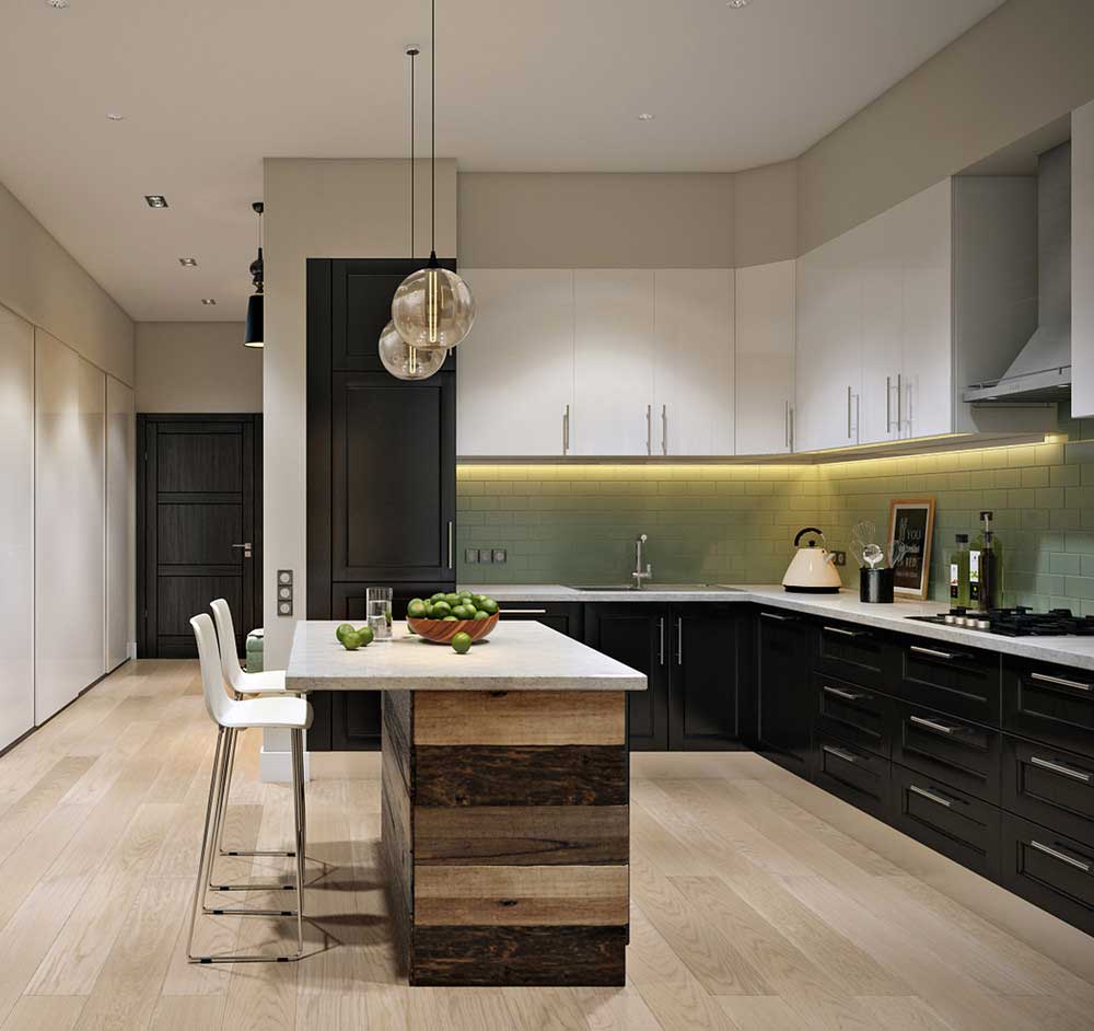 La conception de la cuisine moderne 2019 aidera à créer un îlot séparé des locaux