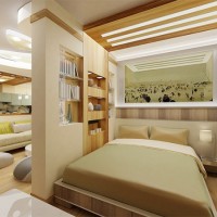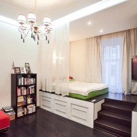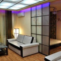 L'inconvénient d'un tel zonage est l'absence totale d'isolation phonique entre les pièces partagées. En outre, il est utile d’examiner comment l’écran s’intégrera à l’intérieur.