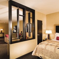 Le verre est beau et moderne, et quand la lumière à l'intérieur de l'autre pièce est inhabituelle et mystérieuse. Les cloisons en tissu ou en bambou peuvent être utilisées en option pour zoner la pièce. Cependant, vous devrez tenir compte du style général de la pièce et déterminer si celui-ci s'intègre parfaitement à l'intérieur.