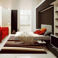 Utilisez des meubles sans pattes apparentes - ceci permettra à votre pièce d’être visuellement spacieux. De plus, n’excluez pas l’utilisation de meubles transformables, cela vous fera économiser un espace déjà précieux. N'utilisez pas d'armoires encombrantes, mais plutôt des chaises, peut-être des ottomanes mous. La tâche est simplifiée si une personne habite dans l'appartement.