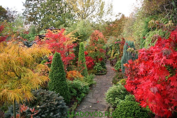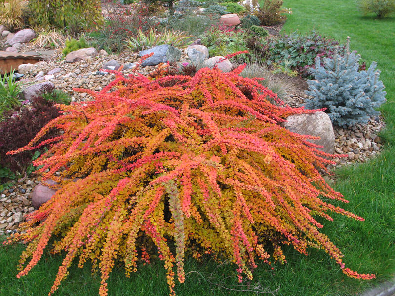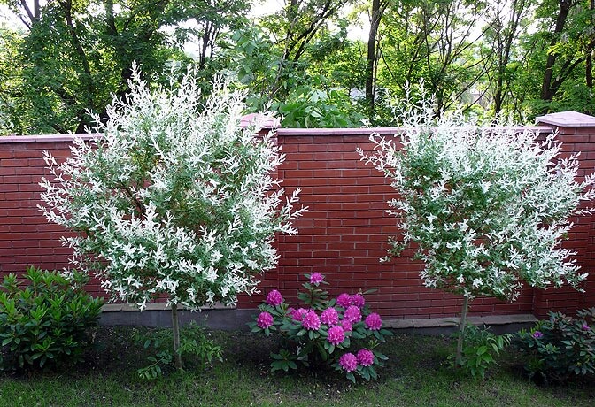 Compatibilité avec d'autres cultures. S'il y a déjà des arbres sur le site, il est préférable d'utiliser des arbustes de taille moyenne. Ils s'intègrent harmonieusement dans la grande image.
