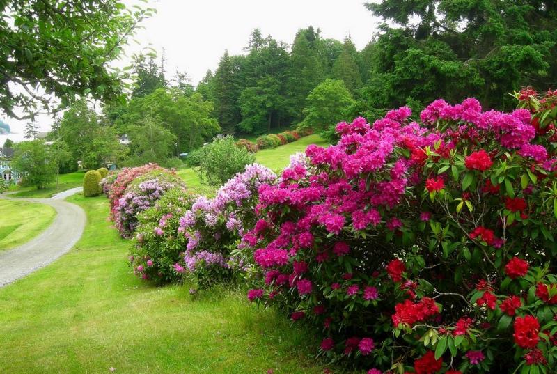 - Rhododendron Il est considéré comme le plus beau, mais aussi le plus exigeant et difficile à soigner. Mais si vous apprenez les règles de soin, alors cela deviendra la décoration centrale du jardin. Les inflorescences peuvent être de différentes nuances - du blanc au rose en passant par le violet et le lilas.