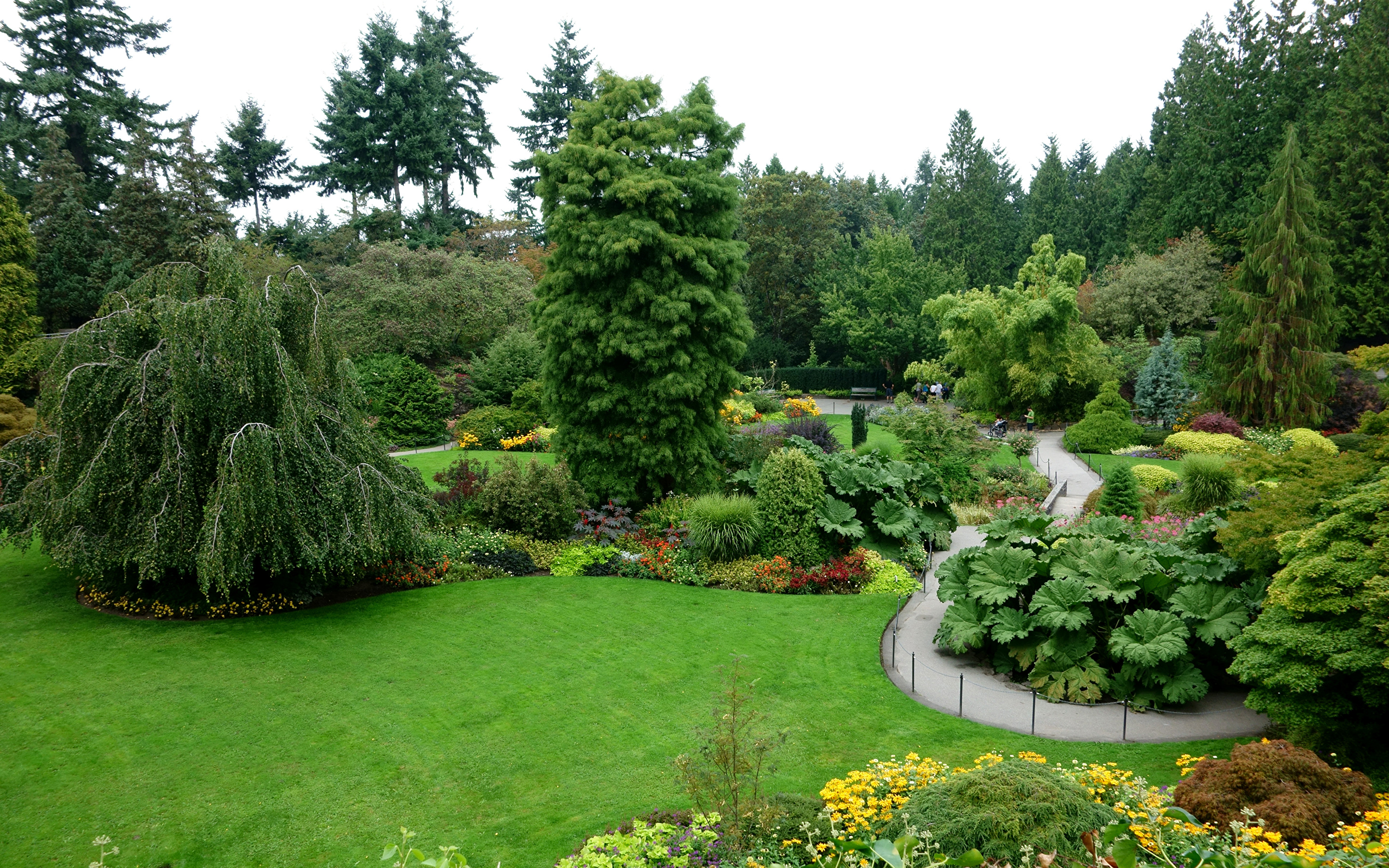Les arbustes ont fière allure aux fourches et aux virages des allées